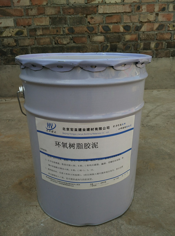 3、攪拌配料時,先將A料和B料按照1:3的比例倒入桶中攪拌混合均勻,然后邊攪拌邊緩慢加入C料,直至攪拌成均勻的膠泥狀。